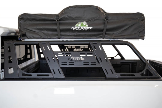 The Addictive Desert Designs ADD-Lander overland rack is now available for all full-size pickup trucks (with some exceptions). The universal design uses a clamp mounting system, so there is no drilling into your bed rails required for installation. This will fit Ram, Chevy, GMC and Ford 1500/2500/3500 series trucks. The combination of plate steel and tube gives a unique look while providing a sturdy mounting point for heavier items up top, such as rooftop tents. Slotted rails along the side of the universal overland rack give a mounting point almost any off-road accessory. As always, this product is powder coated hammer black and made in America.